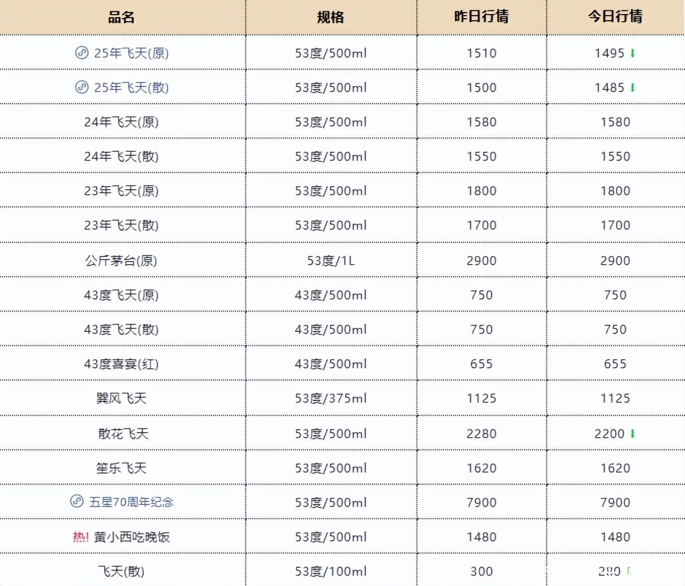 1月时,其末端价钱仍防守在2200元足下的相对高位,6月初次跌破2000元整数关隘,7月进一步下探至1800元以下,10月底失守1700元,11月末平直跌穿1600元。另据“本日酒价”数据,12月12日,53度/500ml飞天茅台的散瓶与原箱批发价,已双双跌破1499元的官方迷惑价。