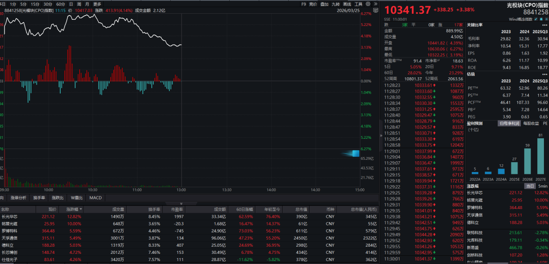 板块热门方面,CPO见识大涨,成为上昼A股市集主要热门之一。